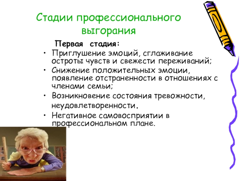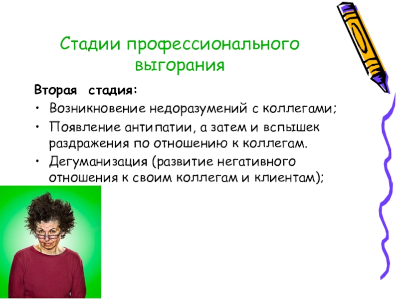 Дегуманизация (развитие негативного отношения к своим коллегам и клиентам);