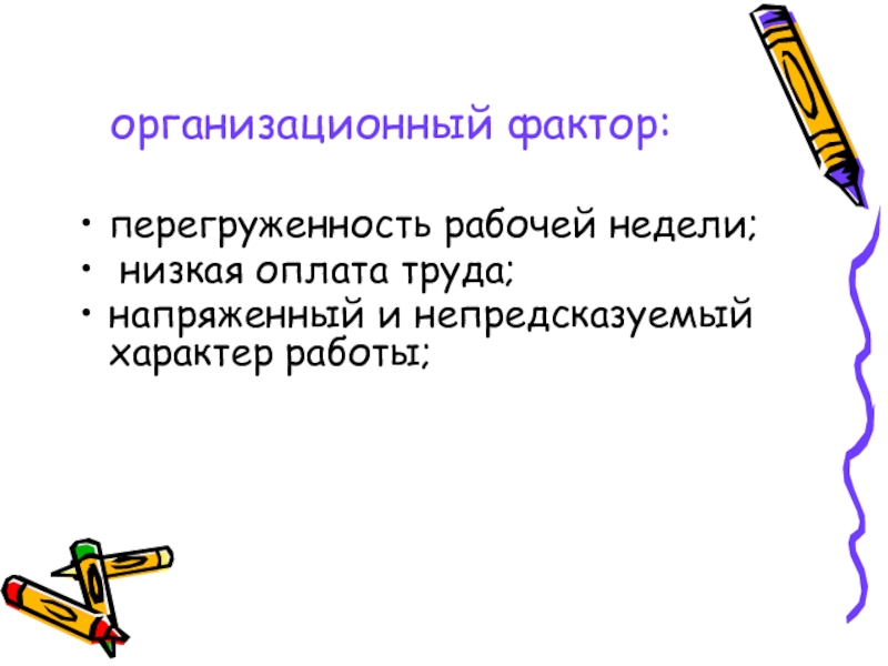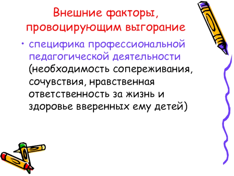 Слайд 3Внешние факторы, провоцирующим выгорание