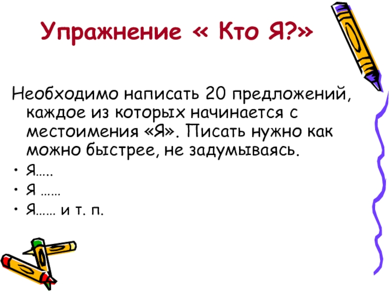 с местоимения «Я». Писать нужно как можно быстрее, не задумываясь.