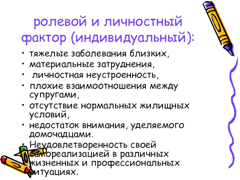 Слайд 7ролевой и личностный фактор (индивидуальный):