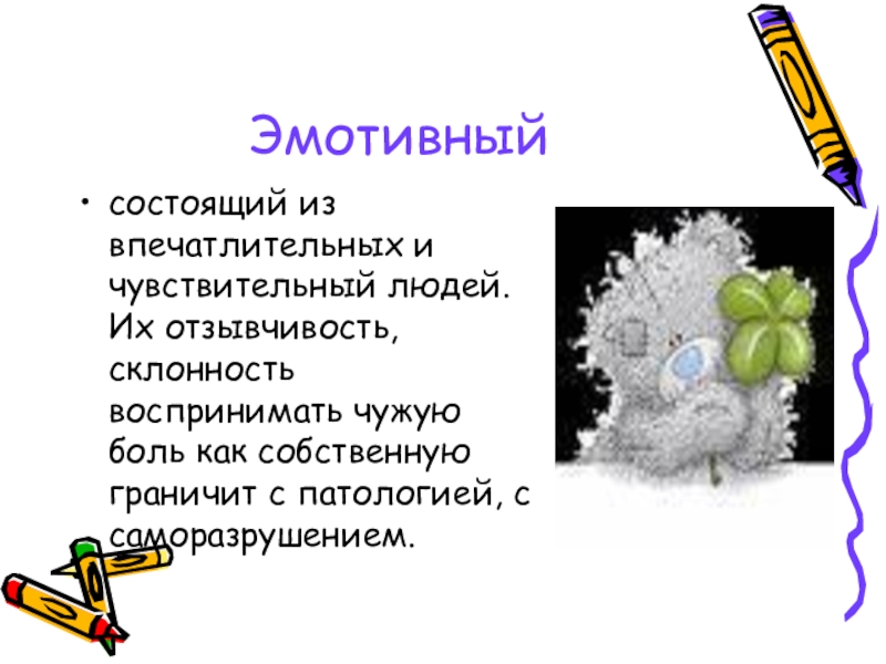 состоящий из впечатлительных и чувствительный людей. Их отзывчивость, склонность воспринимать