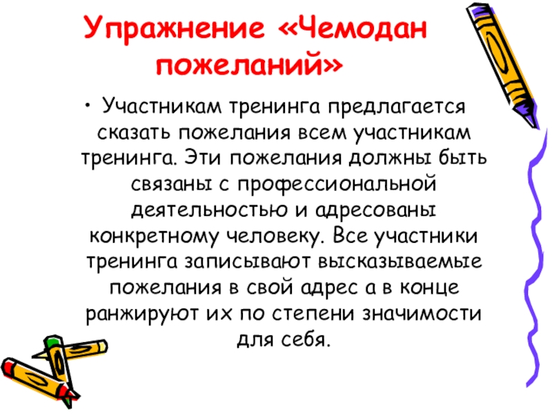 Слайд 22 Упражнение «Чемодан пожеланий»