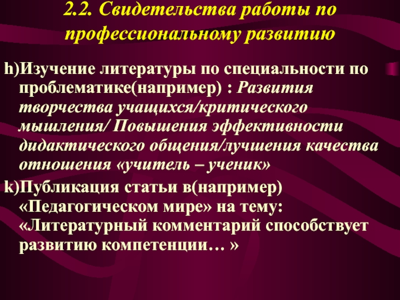 Слайд 142.2 Свидетельства работы по профессиональному развитию