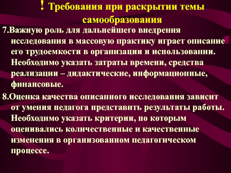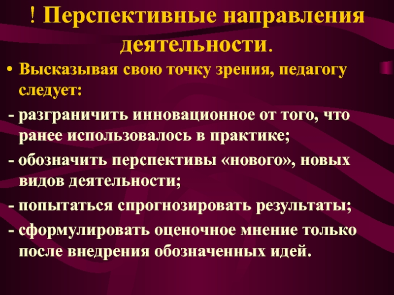- сформулировать оценочное мнение только после внедрения обозначенных идей.