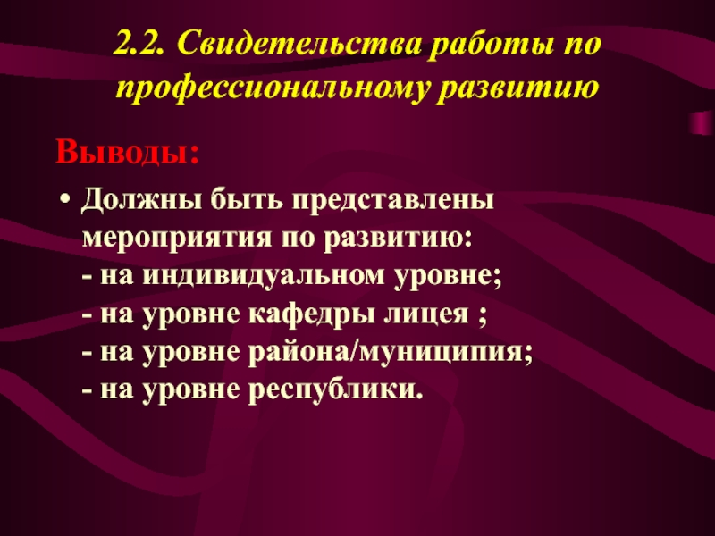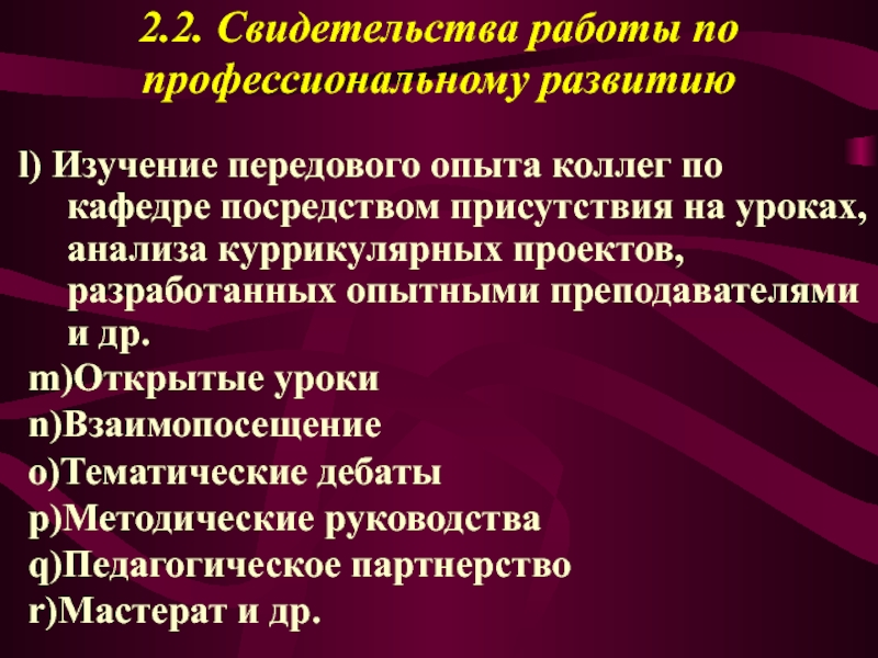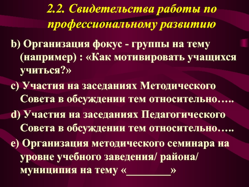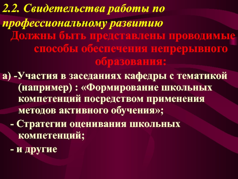 Слайд 152.2. Свидетельства работы по профессиональному развитию