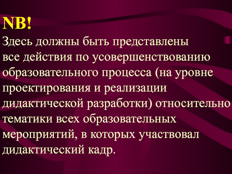 а) -Участия в заседаниях кафедры с тематикой (например) : «Формирование школьных компетенций посредством применения методов активного обучения»;