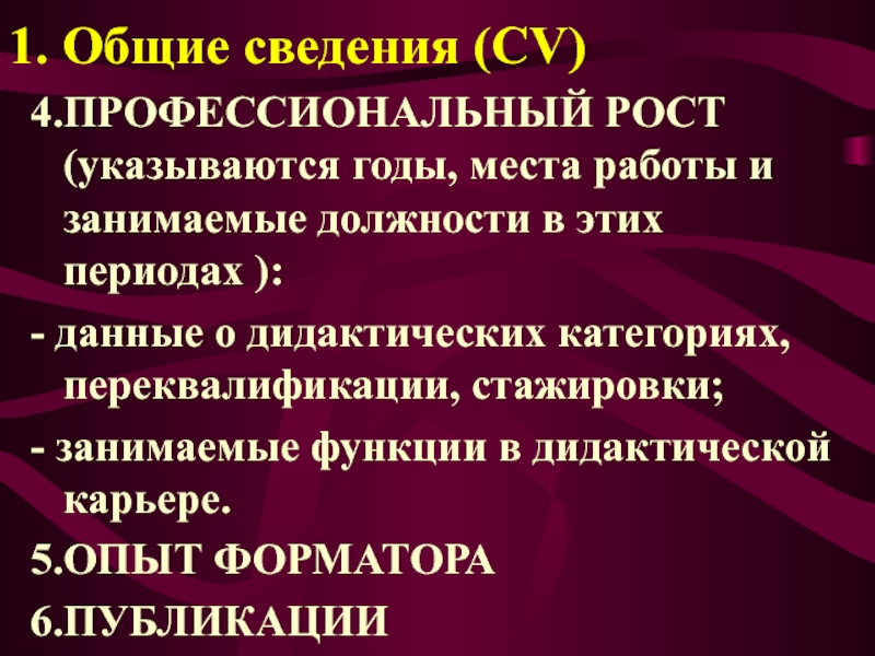 4.ПРОФЕССИОНАЛЬНЫЙ РОСТ (указываются годы, места работы и занимаемые