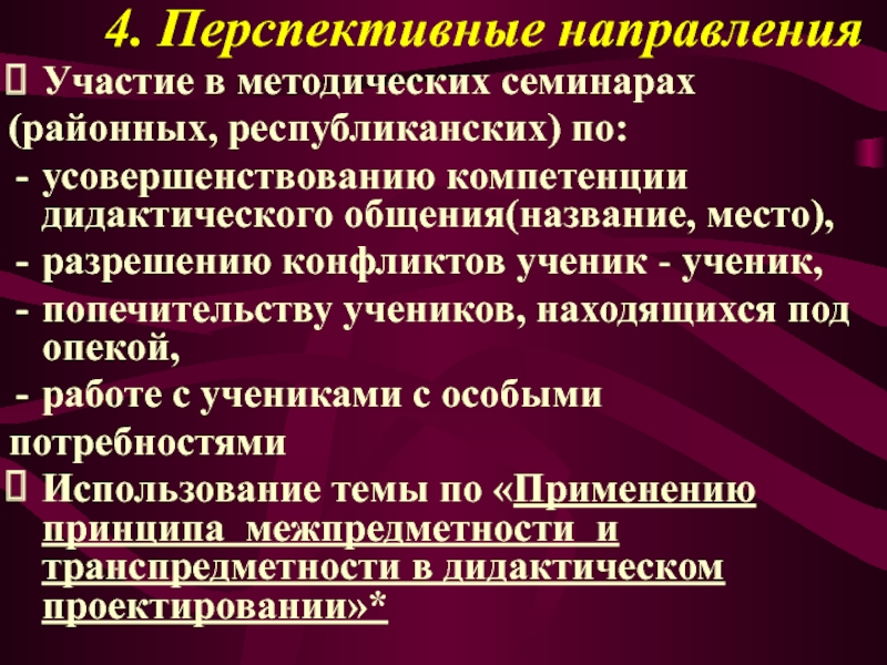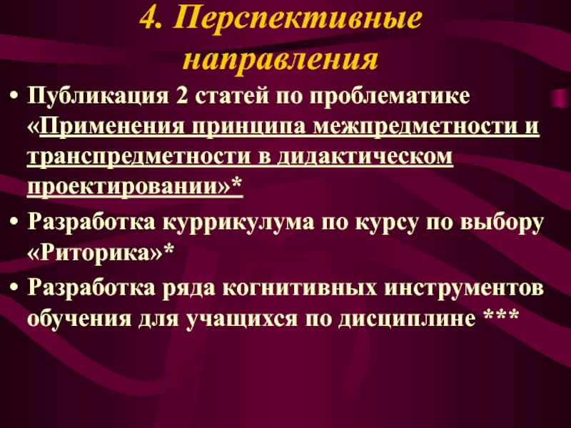 Использование темы по «Применению принципа межпредметности и транспредметности в дидактическом проектировании»*