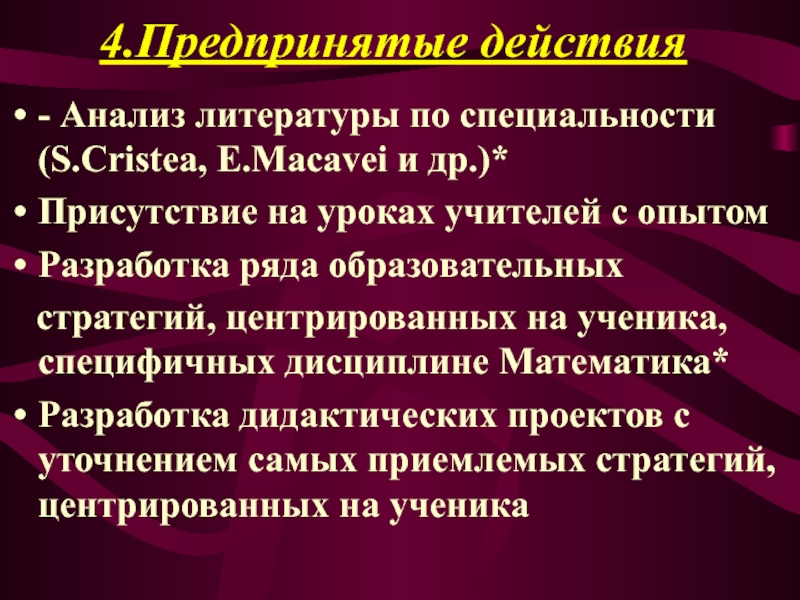 - Анализ литературы по специальности (S.Cristea, E.Macavei и др.)*