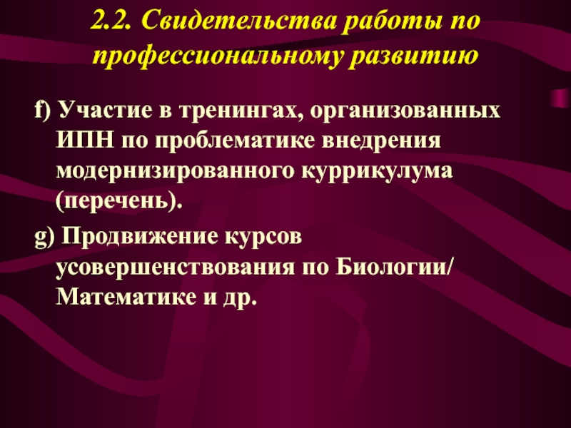 Слайд 182.2. Свидетельства работы по профессиональному развитию
