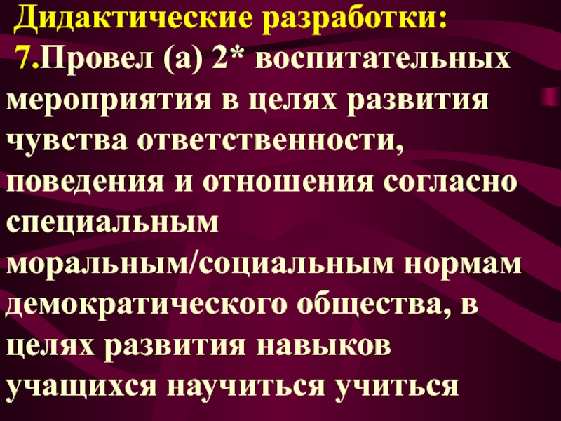 развитие личности учащихся (развитие мышления(с перечислением мыслительных операций), творчества, способности работать в группе, уважение мнения коллеги и др.).