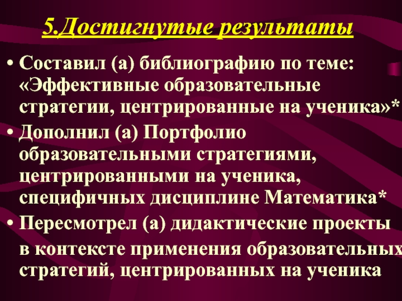 Дополнил (а) Портфолио образовательными стратегиями, центрированными на ученика, специфичных дисциплине Математика*