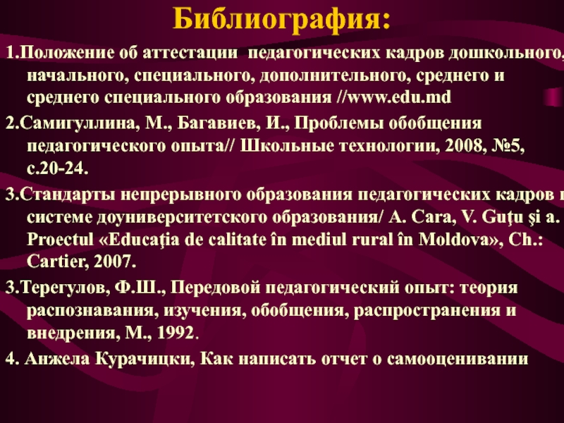 3.Терегулов, Ф.Ш., Передовой педагогический опыт: теория распознавания, изучения, обобщения, распространения и внедрения, М., 1992.