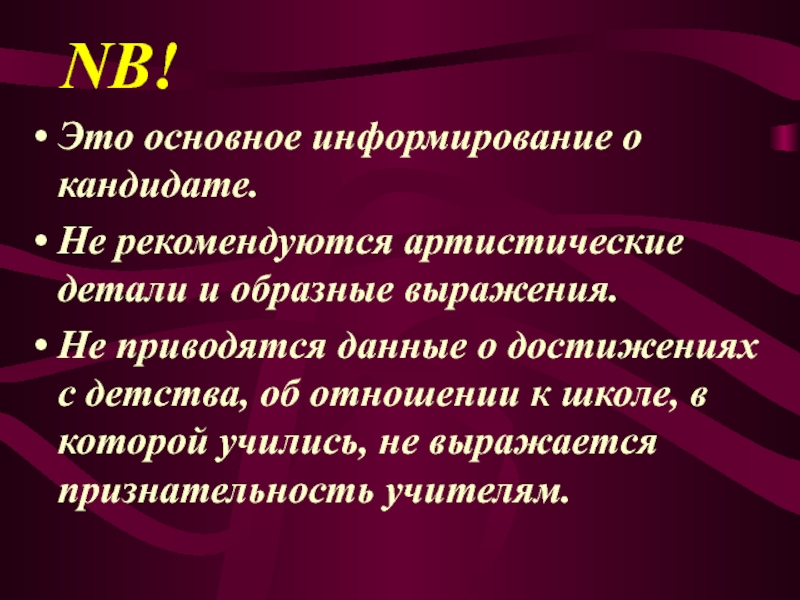 Не приводятся данные о достижениях с детства, об отношении к школе, в которой учились, не выражается признательность учителям.