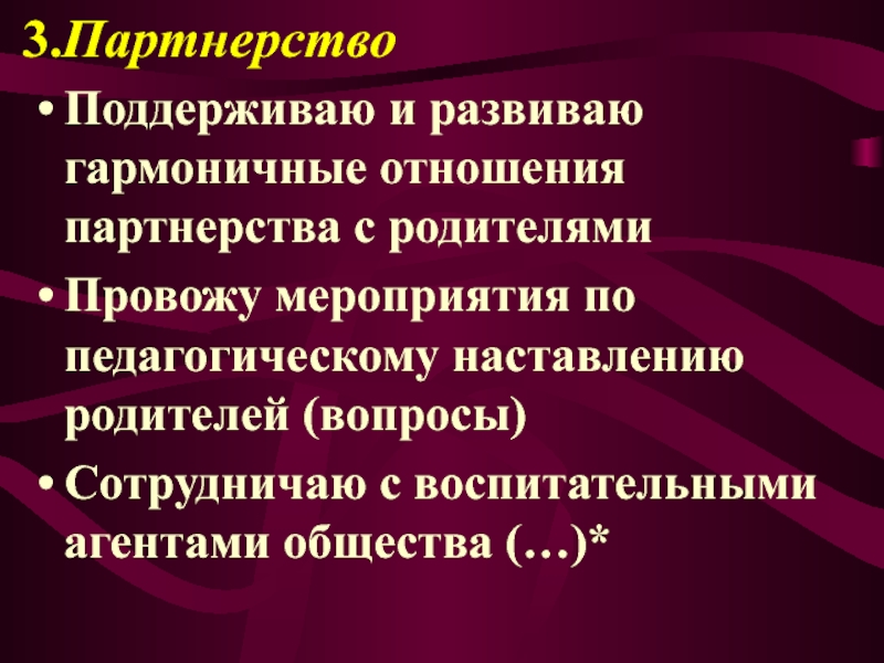 Поддерживаю и развиваю гармоничные отношения партнерства с родителями