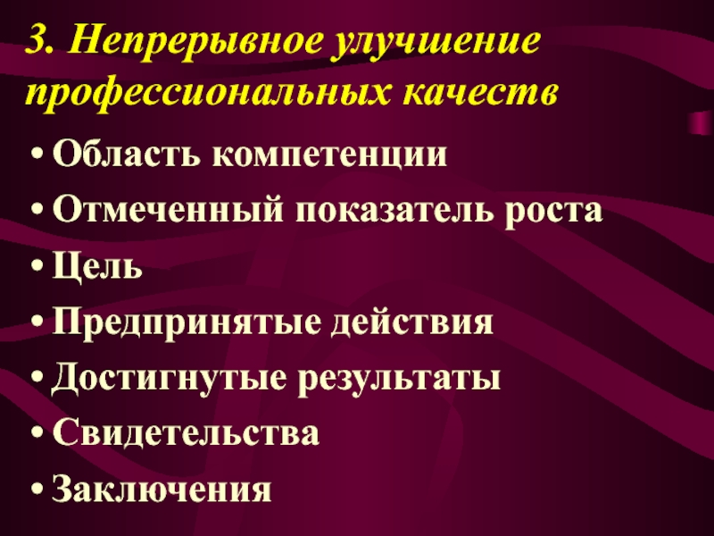 Слайд 443. Непрерывное улучшение профессиональных качеств