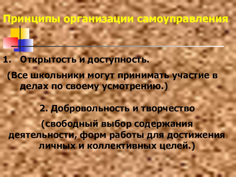 (свободный выбор содержания деятельности, форм работы для достижения личных и коллективных целей.)