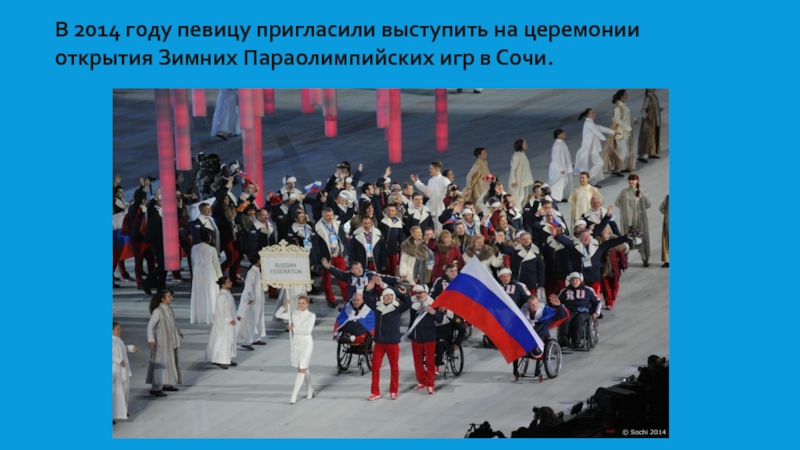 Слайд 19В 2014 году певицу пригласили выступить на церемонии открытия Зимних Параолимпийских