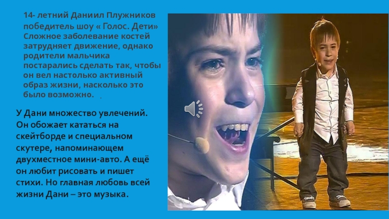 14- летний Даниил Плужников победитель шоу « Голос. Дети» Сложное