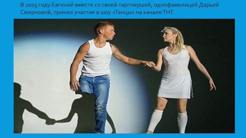 Слайд 6В 2015 году Евгений вместе со своей партнершей, однофамилицей Дарьей Смирновой, принял участие