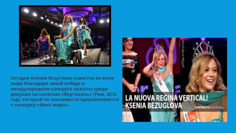 Слайд 9Сегодня Ксения Безуглова известна во всем мире благодаря своей победе в
