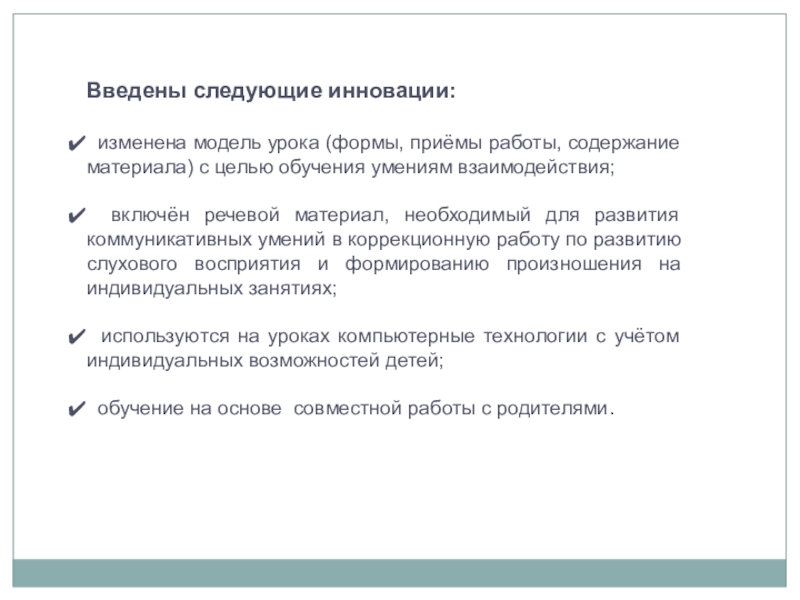 изменена модель урока (формы, приёмы работы, содержание материала)