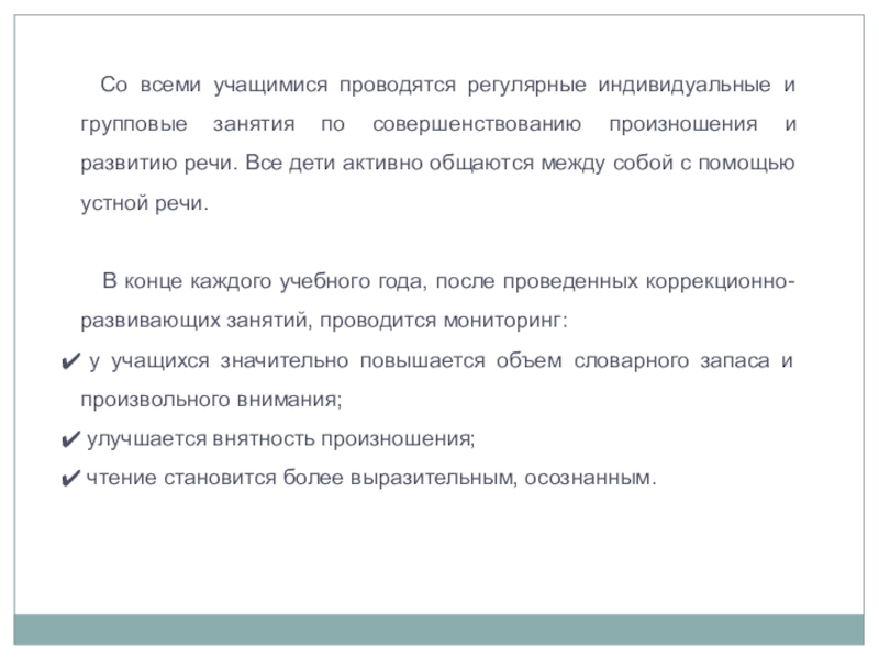 Слайд 14 Со всеми учащимися проводятся регулярные индивидуальные и групповые занятия по