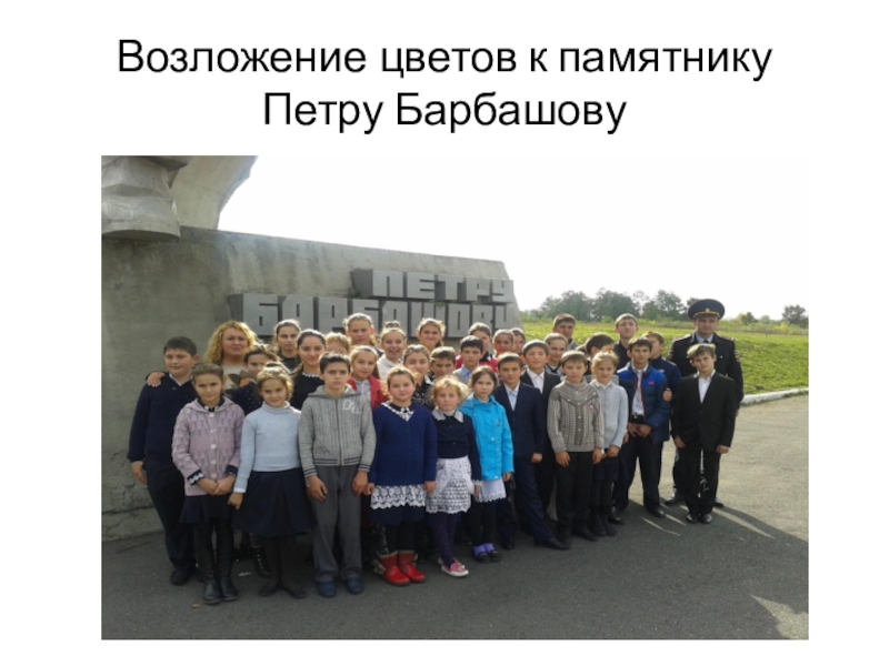 Слайд 3Возложение цветов к памятнику Петру Барбашову