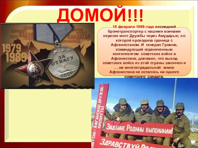 25 декабря 1979 года в 15.00 начался ввод ограниченного контингента советских войск на территорию Афганистана, через Кушку – на Герат и Кандагар , а дальше на Кабул.