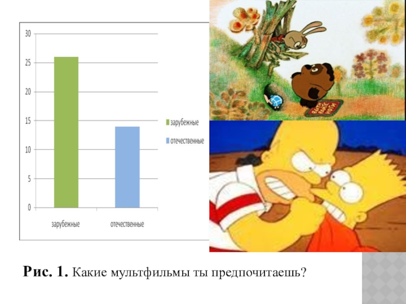 Гипотеза исследования: мультфивзрольмы отечественного и иностранного производства, в которых больше добра, а не насилия, будут способствовать гармоничному развитию ребенка, а те, в которых много насилия, развивают у ребенка тревожность, страхи, неуверенность в общении с слыми и детьми.