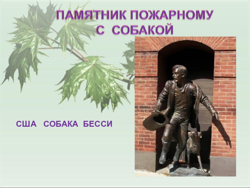 В Берлине – памятник собаке поводырю слепых. Эти собаки выполняют неоценимую оценку людям с ограниченными возможностями.