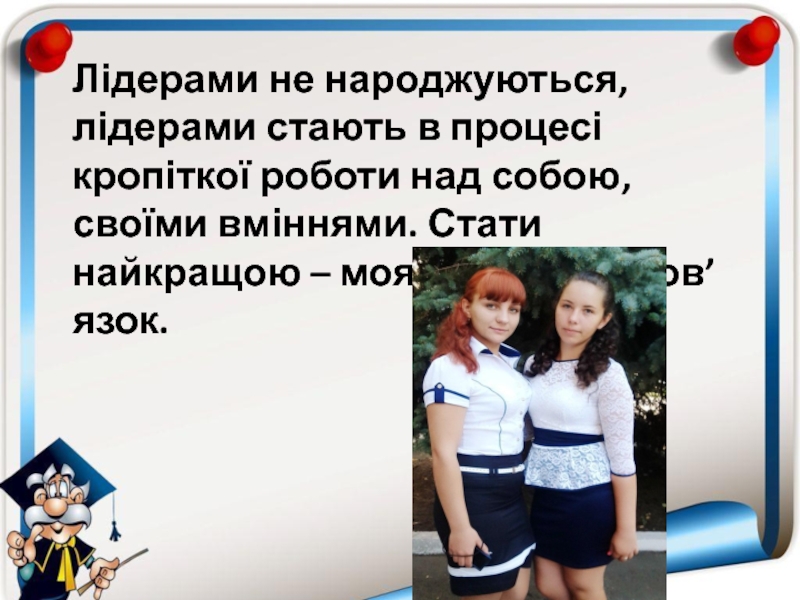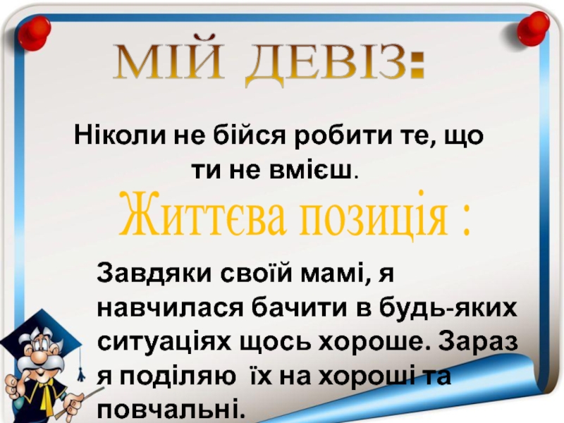 Завдяки своïй мамі, я навчилася бачити в будь-яких ситуаціях щось хороше. Зараз я поділяю ïх на хороші та повчальні.