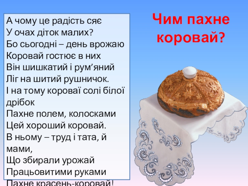 Пахне красень-коровай!