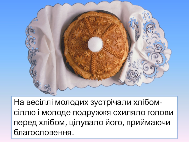 На весіллі молодих зустрічали хлібом-сіллю і молоде подружжя схиляло голови перед