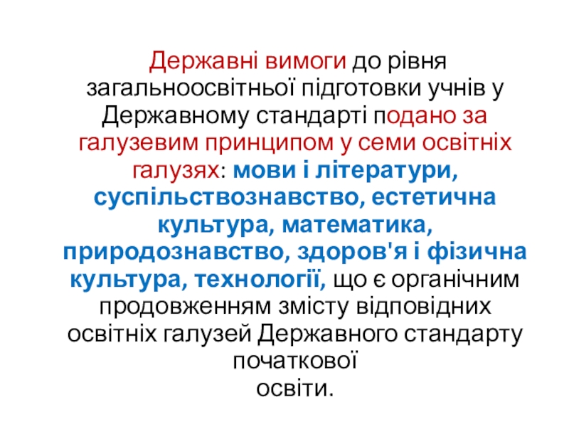 Слайд 5 Державні вимоги до рівня загальноосвітньої підготовки учнів у