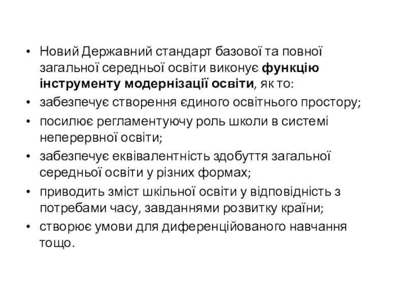 Слайд 15Новий Державний стандарт базової та повної загальної середньої освіти виконує функцію інструменту