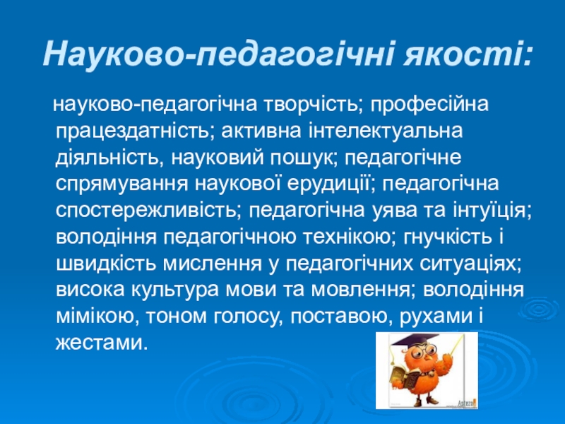 Слайд 5Науково-педагогічні якості: