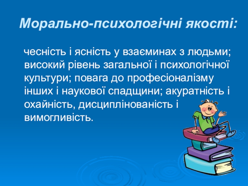 Слайд 4Морально-психологічні якості: