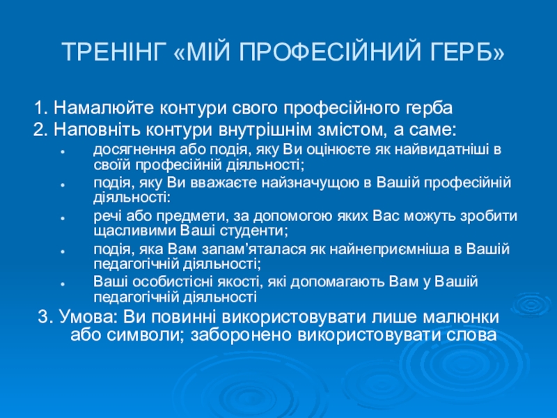 Слайд 9ТРЕНІНГ «МІЙ ПРОФЕСІЙНИЙ ГЕРБ»