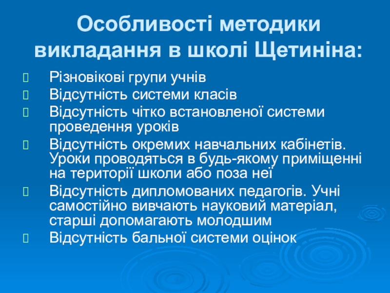 Слайд 10Особливості методики викладання в школі Щетиніна: