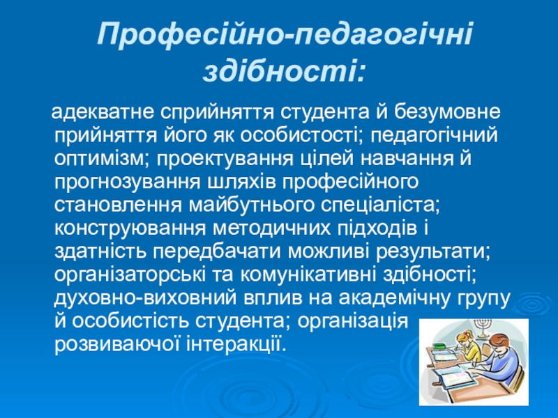 Слайд 7Професійно-педагогічні здібності: