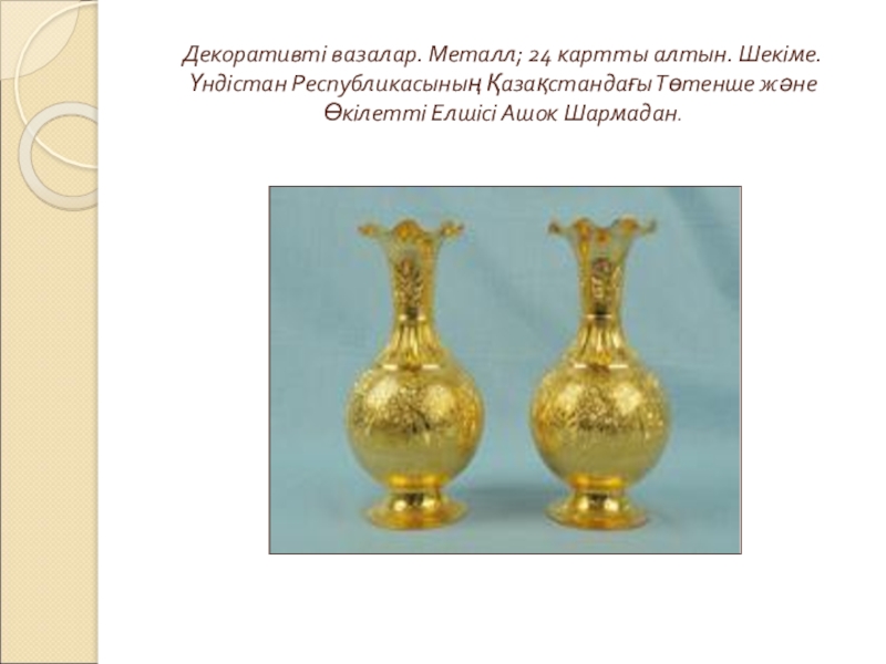Декоративті ыдыс. Ақ түсті металл. Түркияның Палаталар және Биржалар Кеңесінің төрағасы Рифат Хисарчикоглудан.
