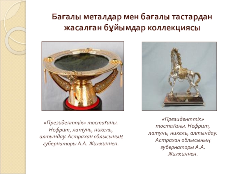 «Президенттік» тостағаны. Нефрит, латунь, никель, алтындау. Астрахан облысының губернаторы А.А. Жилкиннен.