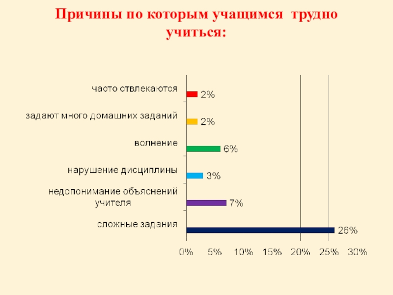 Слайд 28Причины по которым учащимся трудно учиться: