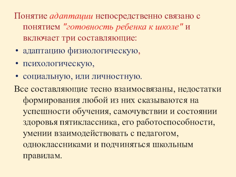 Понятие адаптации непосредственно связано с понятием "готовность ребенка к школе" и