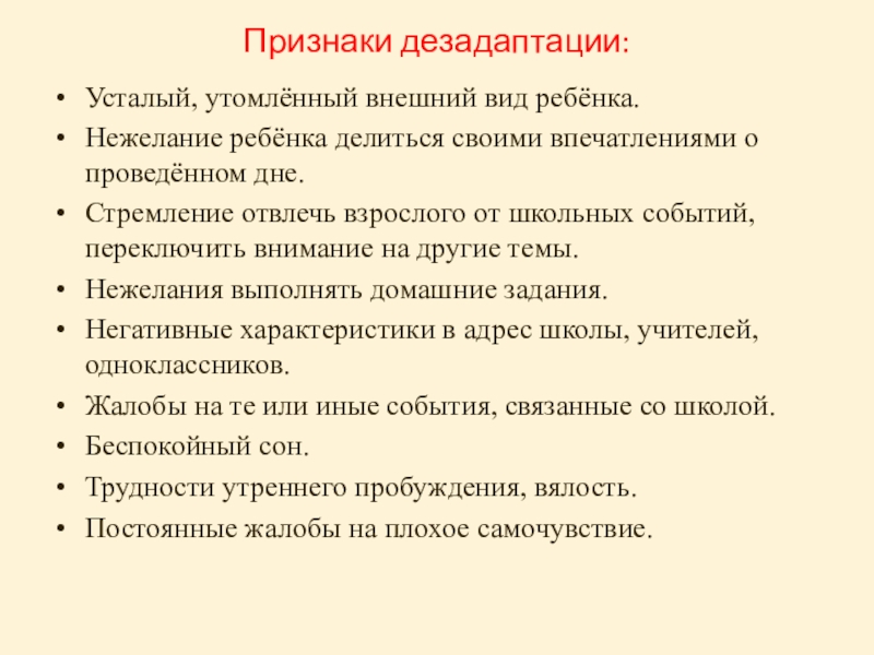 Слайд 20Признаки дезадаптации: