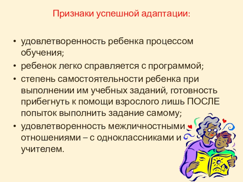 Слайд 19Признаки успешной адаптации: