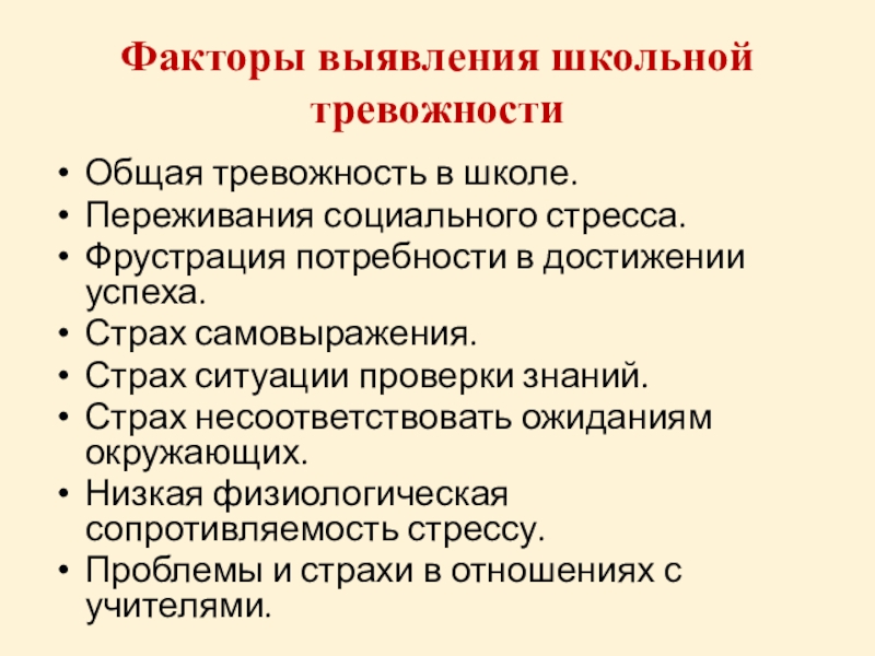 Слайд 25Факторы выявления школьной тревожности