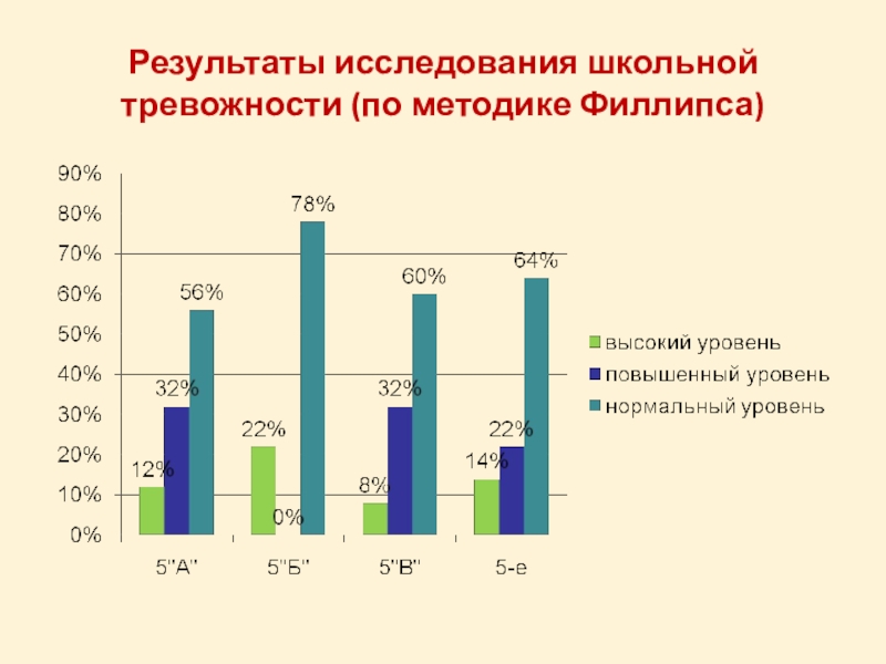 Слайд 24Результаты исследования школьной тревожности (по методике Филлипса)