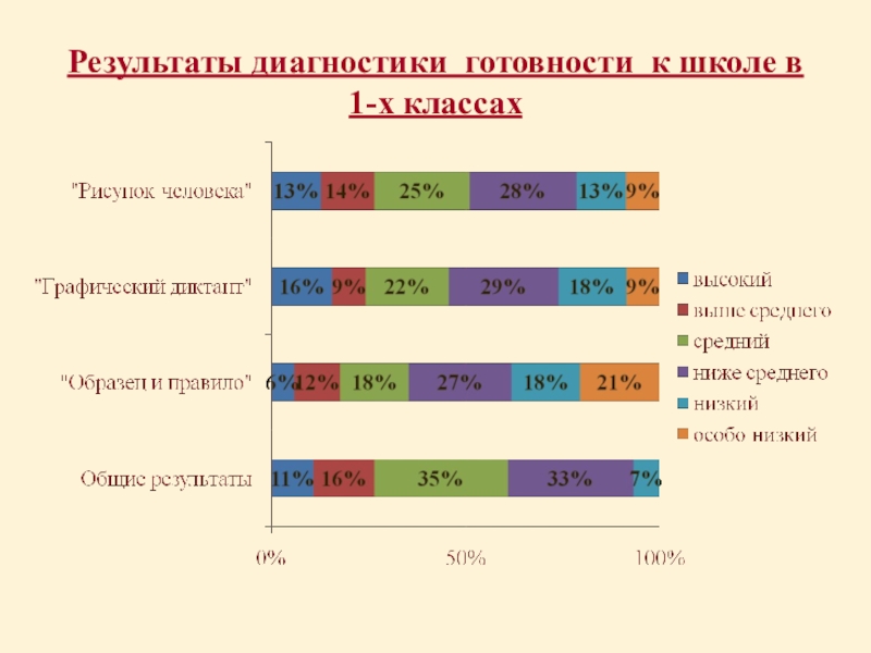 Слайд 5Результаты диагностики готовности к школе в 1-х классах